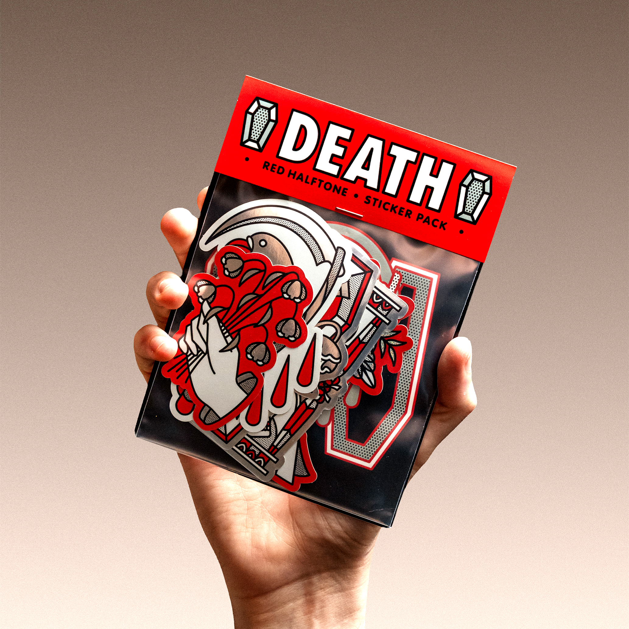 Dein Sticker-Paket enthält deine Sticker, die in einem Plastikbeutel verpackt sind, der für deinen größten Sticker passt, zusammen mit einer passenden Headerkarte.