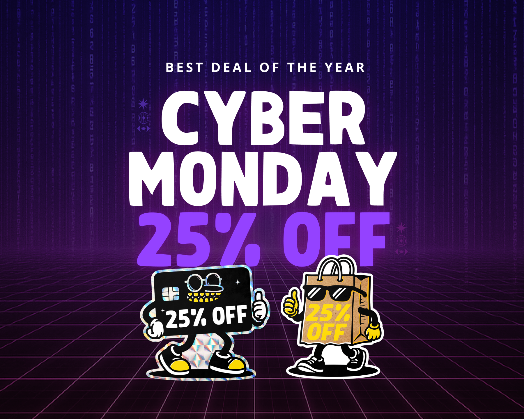 Spare groß an diesem Cyber Monday mit 25% Rabatt auf alles. Sticker, Etiketten – du entscheidest! Nutze das Angebot jetzt, bevor es verschwindet.